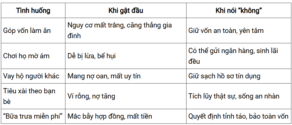 Giải pháp: Nếu muốn tham gia, chỉ nên với người thân tín, số tiền nhỏ, và có cam kết rõ ràng. Tốt nhất, hãy chọn gửi tiết kiệm ngân hàng – an toàn hơn.