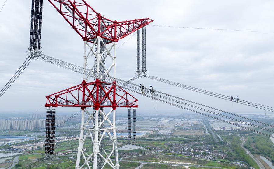 Đường dây truyền tải điện tại tỉnh An Huy, Trung Quốc. Ảnh: Xinhua