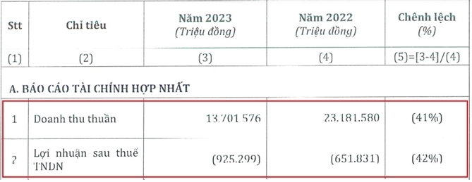 Theo Báo cáo tài chính hợp nhất đã kiểm toán năm 2023, SMC ghi nhận doanh thu đạt 13.701 tỷ đồng và lợi nhuận sau thuế âm 925,2 tỷ đồng. Trước đó, năm 2022, công ty thua lỗ 651 tỷ đồng.