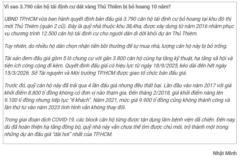 Loạt ông lớn muốn đấu giá 3.790 căn hộ tái định cư bỏ hoang ở Thủ Thiêm.