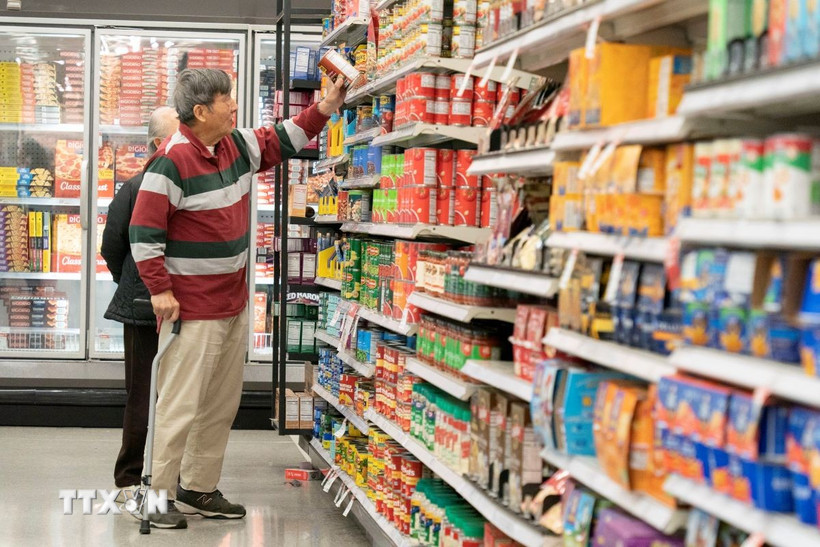 Người dân mua sắm tại siêu thị ở San Mateo, California, Mỹ. (Ảnh: THX/TTXVN)
