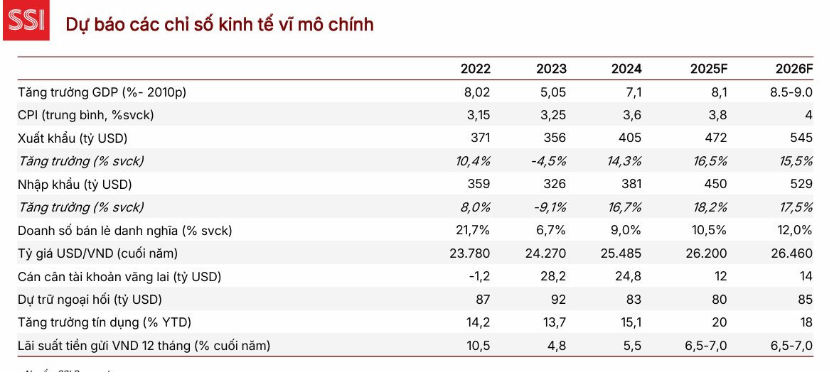 Bức tranh kinh tế Việt Nam đang khép lại năm 2025 với những gam màu sáng. SSI Research dự báo GDP quý 4/2025 có thể đạt mức tăng trưởng 8,2% so với cùng kỳ, đưa tăng trưởng cả năm cán mốc 8%. Động lực chính đến từ sự phục hồi đồng đều của cả ba trụ cột: sản xuất công nghiệp, giải ngân đầu tư công và tiêu dùng nội địa.