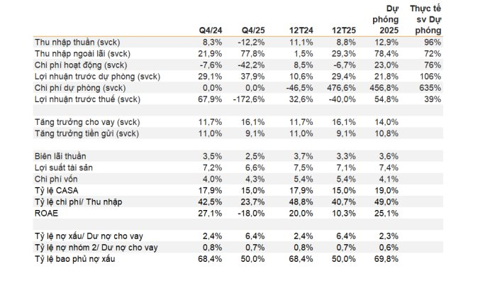Ở chiều ngược lại, một điểm sáng đáng chú ý trong kết quả kinh doanh quý IV/2025 là sự cải thiện rõ rệt của thu nhập ngoài lãi. Theo VNDIRECT, khoản mục này tăng tới 153% so với quý trước và 77% so với cùng kỳ, chủ yếu nhờ hoạt động thu hồi nợ và xử lý các khoản nợ xấu. Cùng với đó, tỷ lệ chi phí trên thu nhập (CIR) được cải thiện đáng kể, cho thấy những tín hiệu tích cực từ quá trình số hóa và tối ưu hóa chi phí vận hành, đặc biệt là chi phí nhân sự.