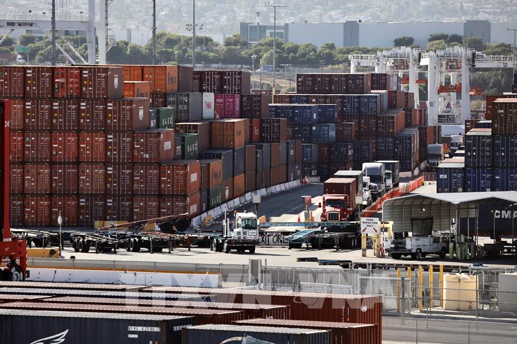 Quang cảnh cảng hàng hóa tại Los Angeles, California, Mỹ. Ảnh: THX/TTXVN