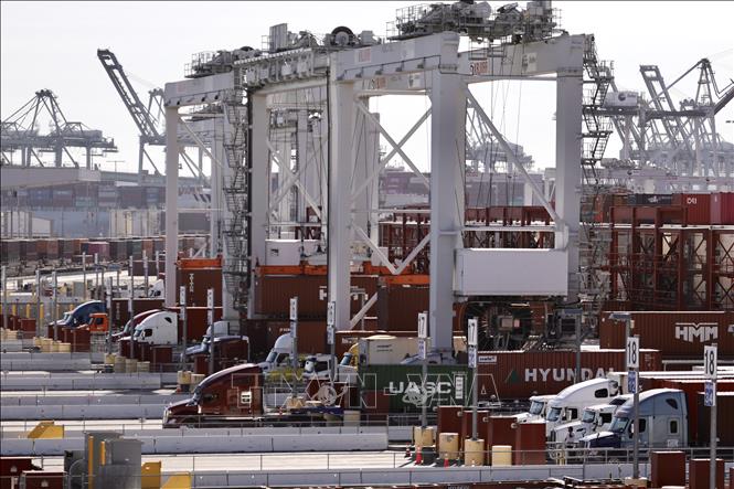 Quang cảnh cảng hàng hóa ở Los Angeles, California, Mỹ. Ảnh: THX/TTXVN