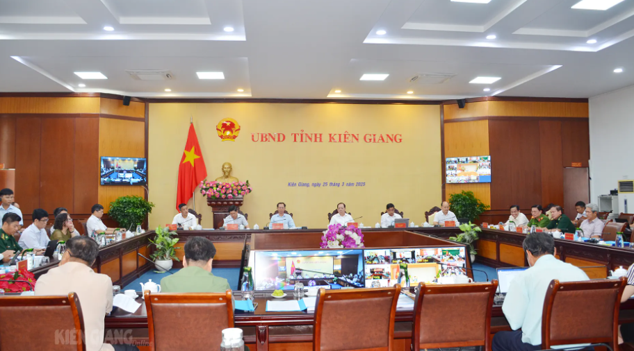Quang cảnh hội nghị tại điểm cầu tỉnh Kiên Giang.
