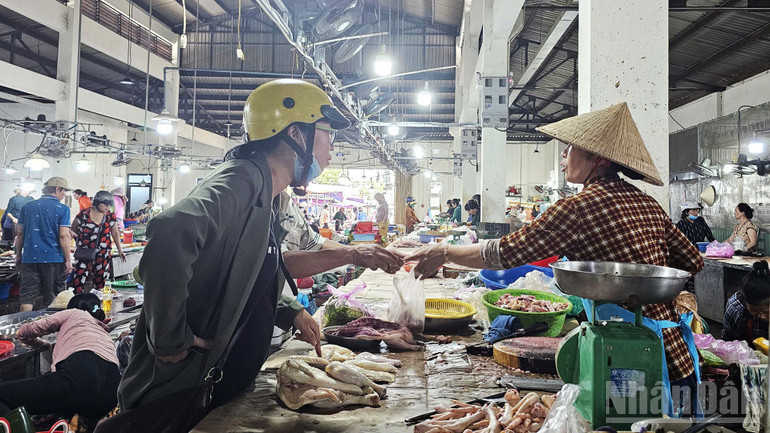 Bà Nguyễn Thị Huế, tiểu thương bán gà tại chợ Hoa Lư chia sẻ: “Ngày thường tôi bán khoảng 30 con gà là đã đủ, nhưng mấy hôm nay số lượng bán ra lên đến cả trăm con mỗi ngày. Người dân mua về để trữ thực phẩm trước bão, nhiều người mua gấp 3-4 lần bình thường”.