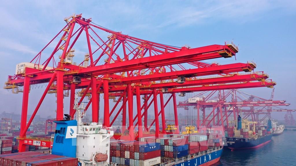 Trong ảnh: Tàu container tại cảng ở tỉnh Giang Tô, Trung Quốc. Ảnh: THX/TTXVN