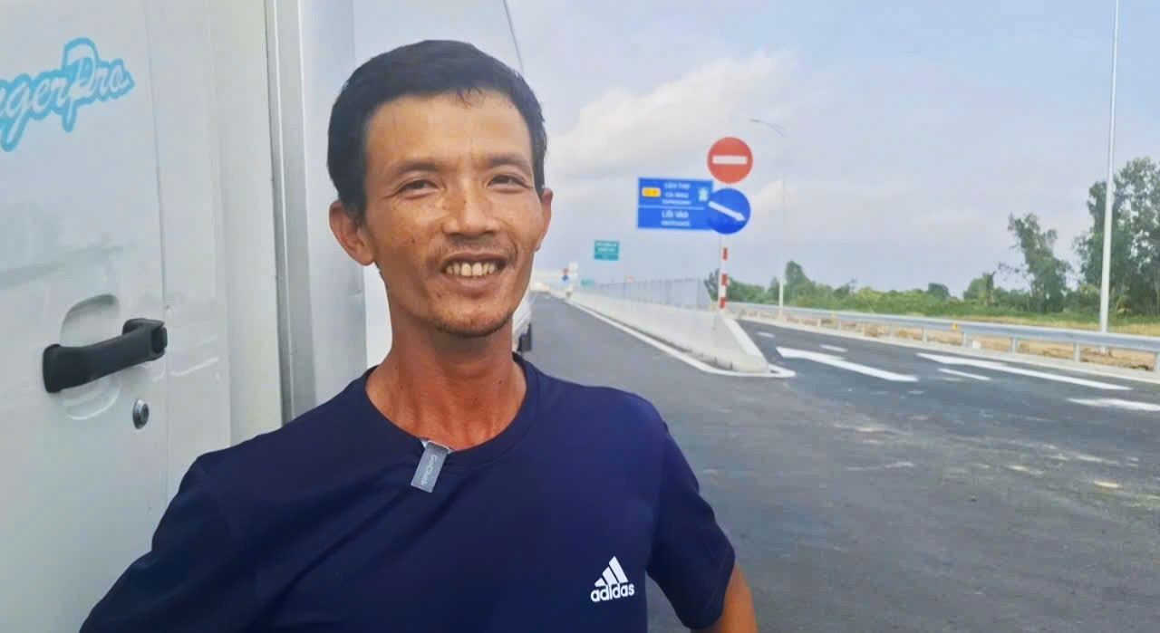 Tài xế Trần Văn Huynh (ngụ xã Đầm Dơi, Cà Mau) vui sướng khi được đi cao tốc.