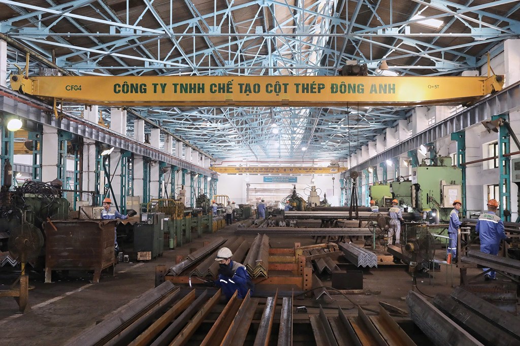 Công nhân làm việc tại nhà máy cột thép Đông Anh. Ảnh: Lê Huy Đông-TTXVN