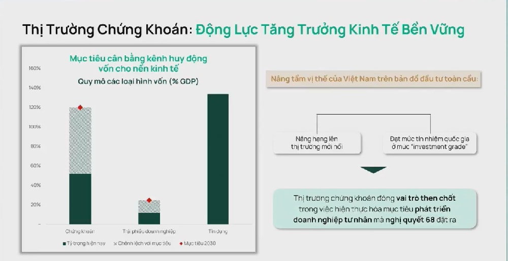 Theo chuyên gia Dragon Capital, thị trường chứng khoán đóng vai trò then chốt trong việc hiện thực hóa mục tiêu phát triển doanh nghiệp tư nhân mà Nghị quyết 68 đặt ra.