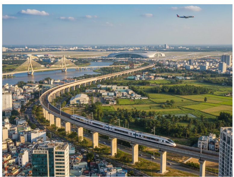 Tuyến đường sắt đô thị kết nối TP.HCM tới sân bay Long Thành. Ảnh minh họa/Gemini