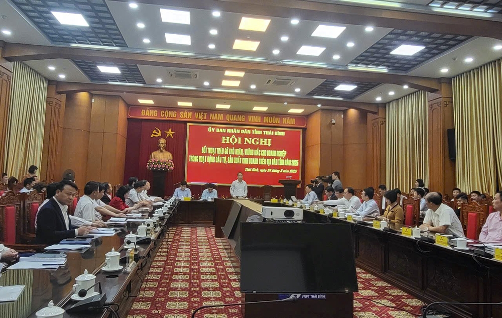 Chiều 24/3, UBND tỉnh Thái Bình tổ chức Hội nghị đối thoại tháo gỡ khó khăn, vướng mắc cho doanh nghiệp trong hoạt động đầu tư, sản xuất kinh doanh trên địa bàn tỉnh năm 2025.