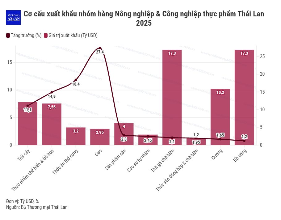 Theo Văn phòng Chính sách và Chiến lược Thương mại (OTPS), Bộ Thương mại Thái Lan, riêng trong tháng 12/2025, kim ngạch xuất khẩu của Thái Lan đạt 28,93 tỷ USD (tương đương 931.299 triệu baht), tăng 16,8% so với cùng kỳ năm trước (YoY), đánh dấu tháng tăng trưởng thứ 18 liên tiếp.