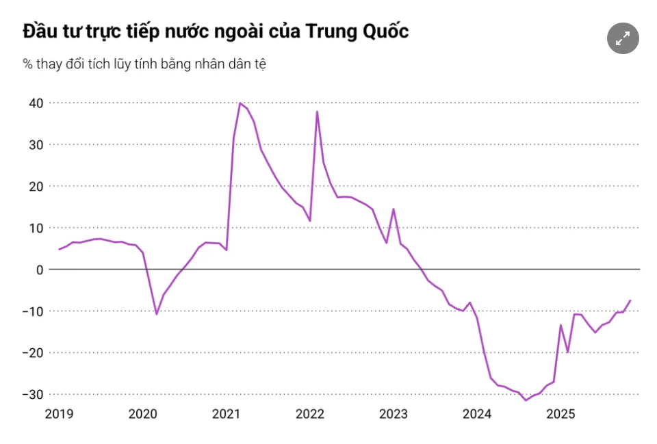 Theo số liệu mới nhất, đầu tư trực tiếp ra nước ngoài của Trung Quốc đã đạt 192,2 tỷ USD trong năm 2024, tăng 8,4% so với năm trước. Đà tăng này diễn ra trong bối cảnh tăng trưởng trong nước chậm lại, nhu cầu nội địa suy yếu và môi trường thương mại toàn cầu ngày càng bất định.