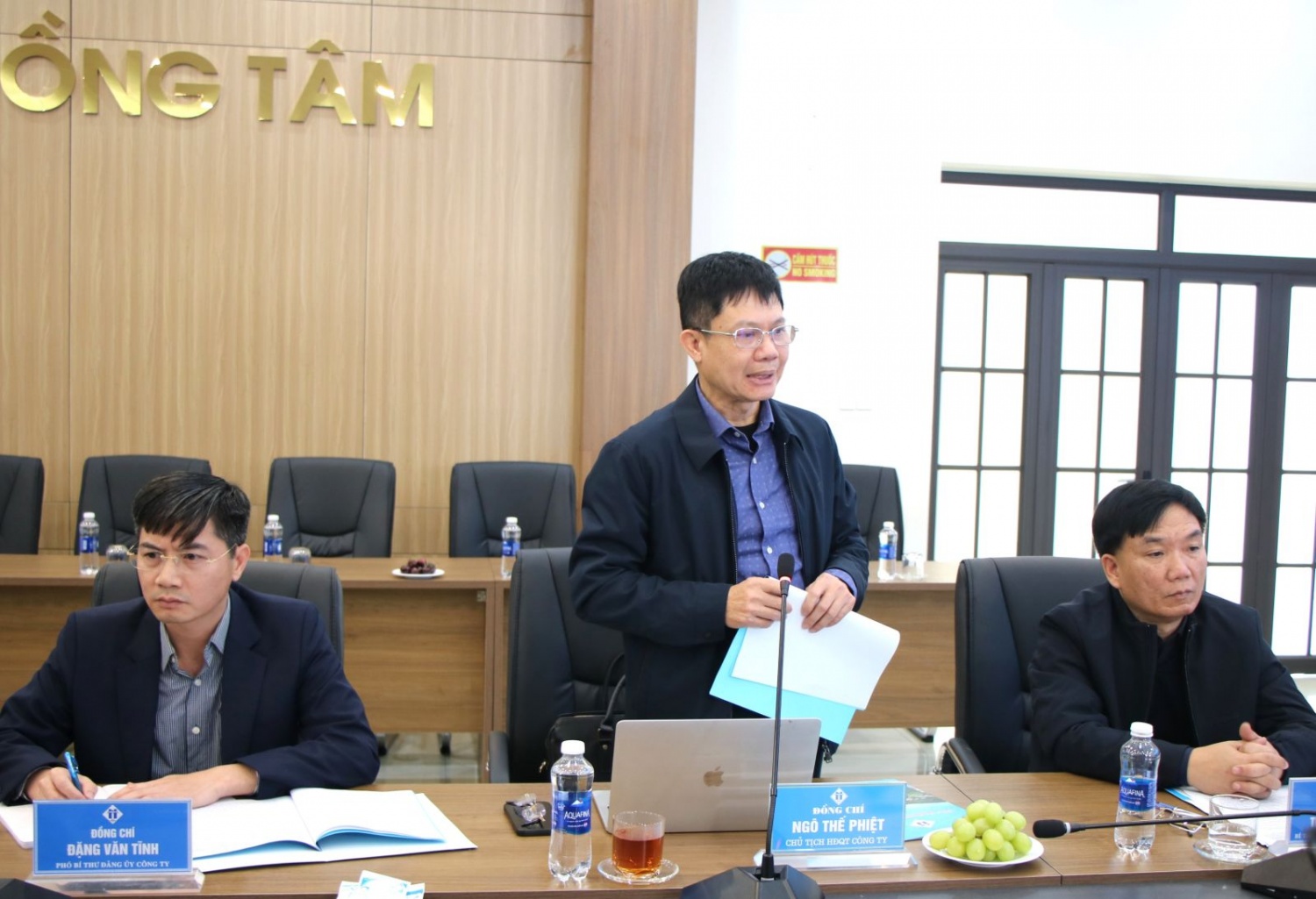 Chủ tịch HĐQT Công ty CP Than Hà Tu Ngô Thế Phiệt báo cáo tình hình SXKD của Công ty CP Than Hà Tu.