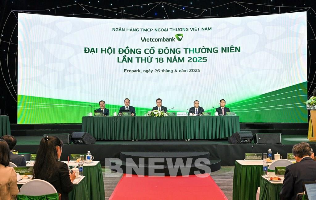 Ban lãnh đạo Vietcombank điều hành Đại hội đồng cổ đông thường niên 2025. Ảnh: BNEWS/TTXVN