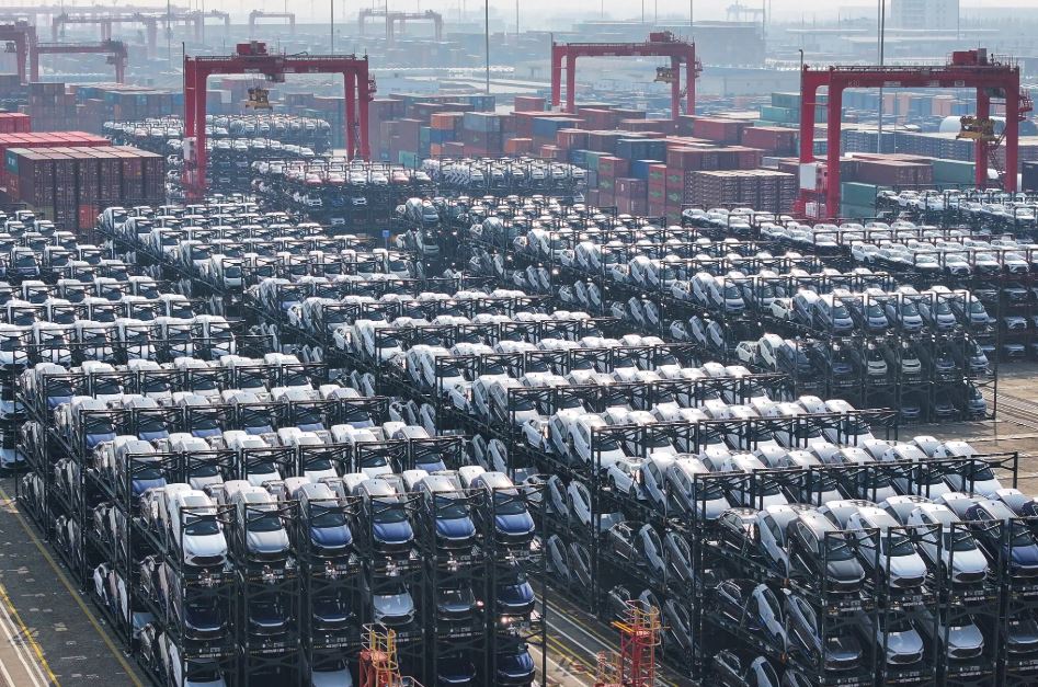 Xe điện của BYD chờ đưa lên tàu xuất khẩu tại cảng Thái Thương ở Tô Châu, Trung Quốc. Ảnh: Getty Images