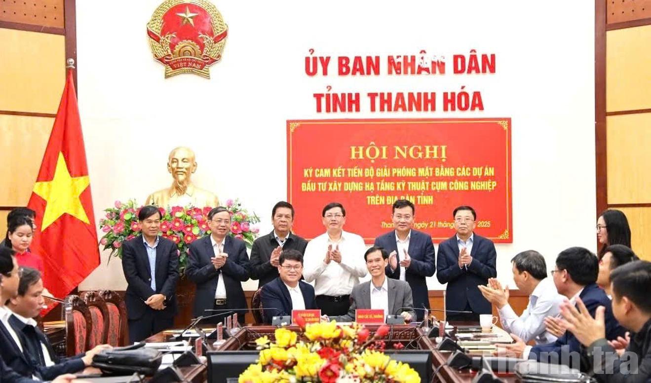 Sáng 21/11, UBND tỉnh Thanh Hóa tổ chức Hội nghị ký cam kết tiến độ giải phóng mặt bằng (GPMB) các dự án đầu tư xây dựng hạ tầng kỹ thuật cụm công nghiệp (CCN). Theo báo cáo của Sở Công Thương, toàn tỉnh Thanh Hóa hiện có 49/50 CCN đang triển khai đầu tư, trong đó 26 CCN đã hoàn thành toàn bộ GPMB, chuyển sang giai đoạn thi công hạ tầng; 18 CCN đang hoàn thiện thủ tục đầu tư để chuẩn bị GPMB; và 5 CCN còn vướng diện tích giai đoạn 2, gồm: Cẩm Châu, Cống Trúc, Vĩnh Minh, Thọ Nguyên và CCN làng nghề Quảng Châu.