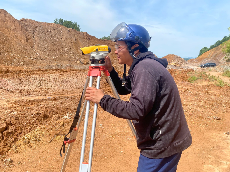 Dưới thời tiết nắng nóng nhưng cán bộ kỹ thuật công trường vẫn miệt mài làm việc.