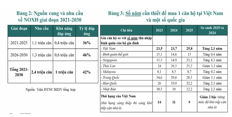 Kết quả của các chương trình hỗ trợ còn hạn chế: tổng số tiền giải ngân của gói tín dụng 145 nghìn tỷ đồng cho vay NOXH đến hết quý I/2025 mới chỉ đạt 3.400 tỷ đồng, tương đương 2,3% quy mô gói; (ii) kết quả thực hiện Đề án 1 triệu căn hộ nhà ở xã hội giai đoạn 2021-2030: hết quý I/2025, mới đạt 6,2% kế hoạch.