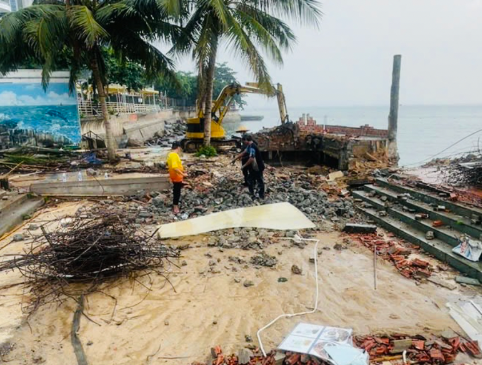 Tại thời điểm cưỡng chế, hiện trạng khu đất 35 Trần Phú có nền đất, lót gạch, sàn gỗ tầng 1, cột gỗ, mái tôn, khung sắt. Đến nay, công tác tháo dỡ công trình lấn biển đã đạt 50%.