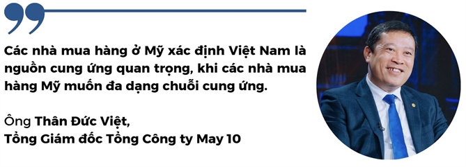 Một yếu tố có thể được xem xét là việc Việt Nam và Mỹ đã nâng tầm quan hệ đối tác chiến lược toàn diện vào tháng 11 năm ngoái, thúc đẩy một số tập đoàn lớn của Mỹ trong đó có Walmart đã thông báo tìm kiếm, mở rộng mạng lưới nhà cung ứng và phát triển cơ sở sản xuất tại Việt Nam. Khi đó, ông Thân Đức Việt, Tổng Giám đốc Tổng Công ty May 10, cho biết các nhà mua hàng ở Mỹ xác định Việt Nam là nguồn cung ứng quan trọng, khi các nhà mua hàng Mỹ muốn đa dạng chuỗi cung ứng. Việt Nam cũng có cơ hội để trao đổi với Mỹ về khả năng áp dụng cơ chế ưu đãi thuế quan phổ cập (GSP) đối với hàng hóa xuất khẩu sang Mỹ, trong đó có dệt may.