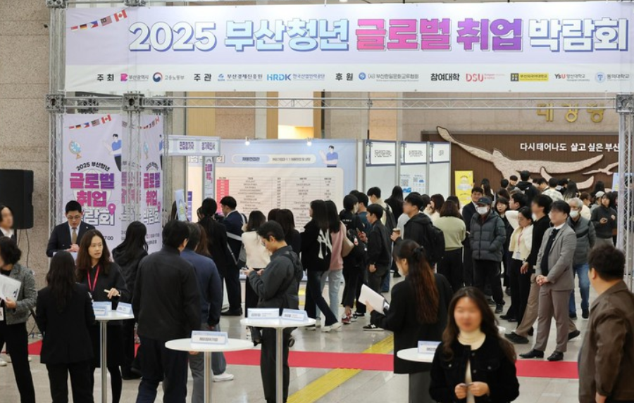 Một hội chợ việc làm quốc tế tại Tòa thị chính Busan - Ảnh: YONHAP