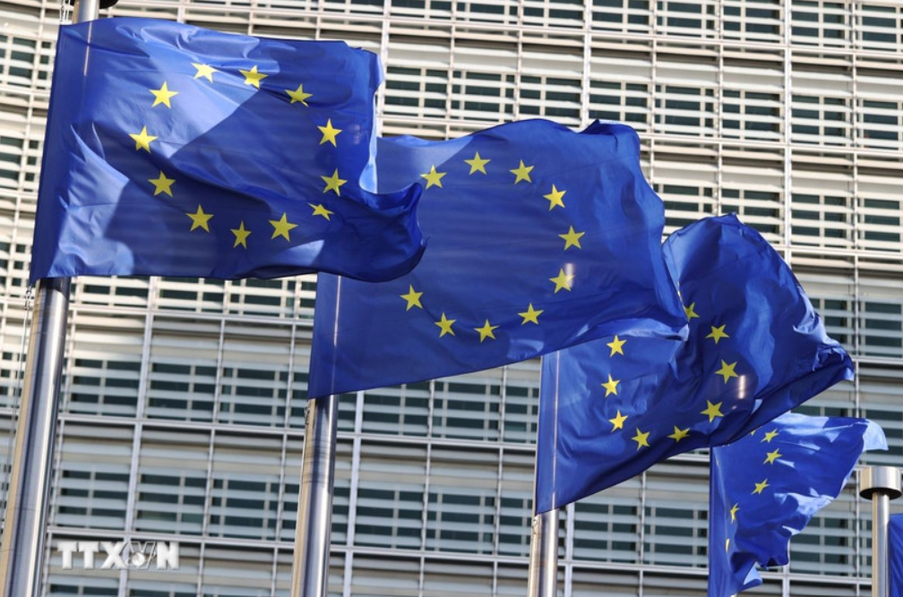 Cờ Liên minh châu Âu (EU) tại trụ sở Ủy ban châu Âu (EC) ở Brussels, Bỉ. (Ảnh: THX/TTXVN)