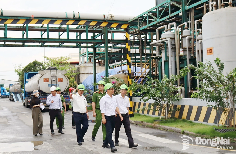 Đoàn kiểm tra liên ngành của tỉnh đi kiểm tra doanh nghiệp trong Khu công nghiệp Biên Hòa 1. Ảnh: Lê An