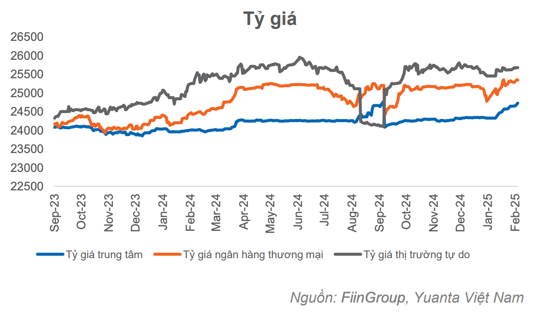 Mặc dù chỉ số DXY (đo lường sức mạnh của đồng USD so với rổ tiền tệ) giảm nhẹ trong tháng 2, nhưng tỷ giá trong nước vẫn tăng do nhu cầu nhập khẩu hàng hóa và nguyên vật liệu cao trong khi xuất khẩu có dấu hiệu chững lại. Điều này dẫn đến tình trạng nhập siêu trong ngắn hạn, tạo áp lực lên tỷ giá.