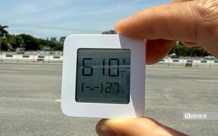 Ghi nhận nhiệt độ ngoài trời tại khu vực sân vận động Mỹ Đình thời điểm 12h30, nhiệt độ lên tới 61 độ C (ảnh: Hữu Thắng).