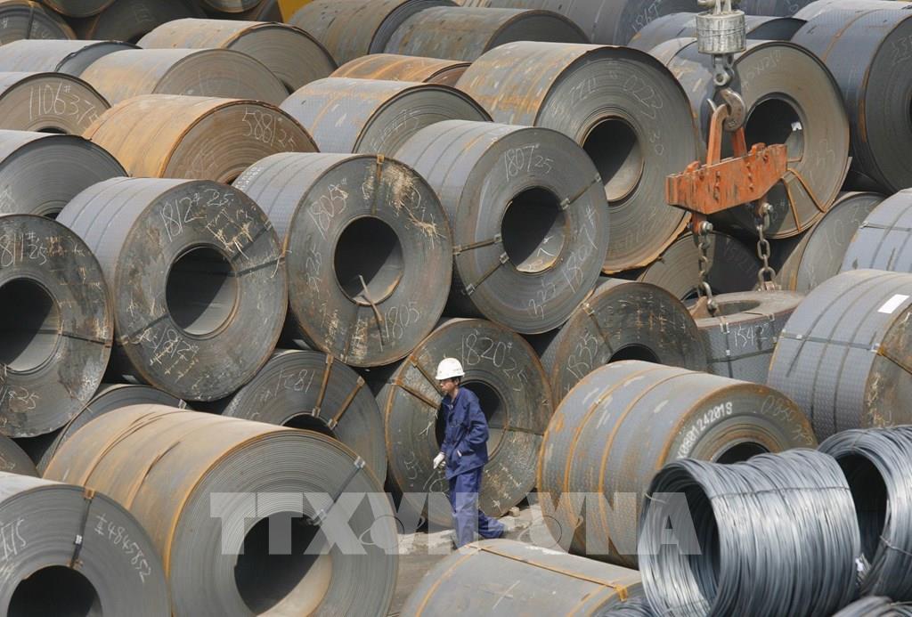 Sản phẩm thép cuộn được xếp tại cảng ở Thẩm Dương, Trung Quốc. Ảnh: EPA-EFE/TTXVN