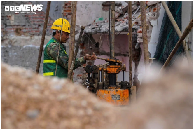 Cùng với sự chủ động của người dân là tinh thần làm việc liên tục của lực lượng công nhân thi công. Trên tuyến phố, máy móc hoạt động cả ngày lẫn đêm, các tổ công nhân thay nhau làm việc theo ca để kịp tiến độ giải phóng mặt bằng theo yêu cầu.