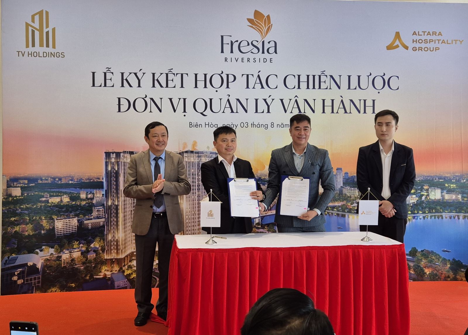 Đón đầu làn sóng phát triển mạnh mẽ này, ngày 3/8, Công ty Cổ phần Địa ốc Tân Vạn (TV Holdings) đã chính thức ký kết hợp tác chiến lược với Altara Hospitality Group – thành viên hệ sinh thái Eco Business System dưới sự quản lý của Altara Singapore – nhằm cung cấp dịch vụ chất lượng sống đẳng cấp cho cộng đồng cư dân tại dự án Fresia Riverside.