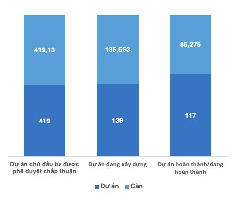 Thứ năm, nhà ở xã hội và chung cư tăng cung, ổn định thị trường: Theo Bộ Xây dựng, tính đến 7 tháng đầu năm 2025, cả nước có 692 dự án nhà ở xã hội đang được triển khai với quy mô 633.559 căn. Trong đó, 146 dự án đã hoàn thành, 124 dự án khởi công và 422 dự án được chấp thuận chủ trương đầu tư. Số lượng dự án này đã đạt 59,6% chỉ tiêu 1 triệu căn hộ đến năm 2025. Nhà ở xã hội có tác động tích cực đến thị trường bất động sản bằng cách tăng nguồn cung, giảm áp lực giá và ổn định thị trường, đáp ứng nhu cầu nhà ở của người dân thu nhập thấp và trung bình. Phân khúc này còn giúp kích thích hoạt động xây dựng, giải quyết tồn kho bất động sản và là đòn bẩy tháo gỡ khó khăn chung cho thị trường.