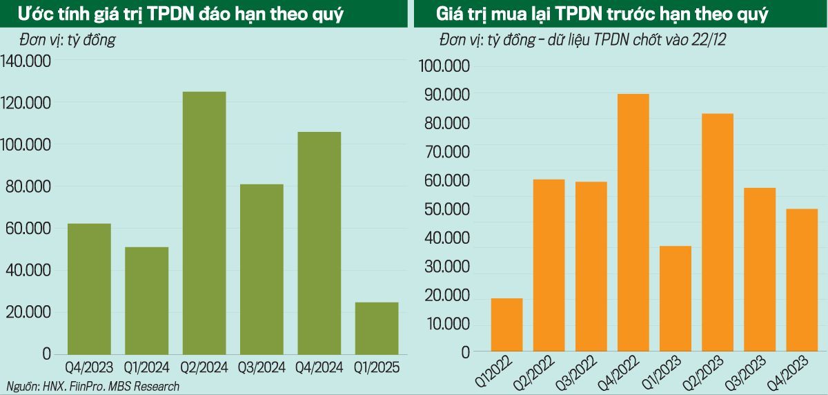 Theo số liệu tổng hợp từ Sở Giao dịch chứng khoán Hà Nội, trong năm 2023, tổng giá trị trái phiếu được mua lại trước hạn khoảng 227 ngàn tỷ đồng, trong đó nhóm doanh nghiệp bất động sản, xây dựng chiếm khoảng 27%. Một số doanh nghiệp niêm yết thậm chí đã “sạch nợ” trái phiếu trong năm 2023. Sau quý 1/2023, gần như không có đợt phát hành mới nào, thị trường trái phiếu doanh nghiệp các quý sau đó đã “hồi sinh”.