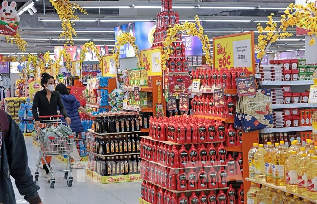 Tại các hệ thống phân phối hiện đại, lượng khách tăng 20-30% so với ngày thường, tập trung vào nhóm hàng thiết yếu. Các siêu thị, trung tâm thương mại ghi nhận sức mua tốt nhưng không đột biến. Nhiều mặt hàng tiêu dùng được giảm giá 30-50%, đồng thời các doanh nghiệp tham gia chương trình bình ổn cam kết giữ giá ổn định trong thời gian một tháng trước và sau Tết.