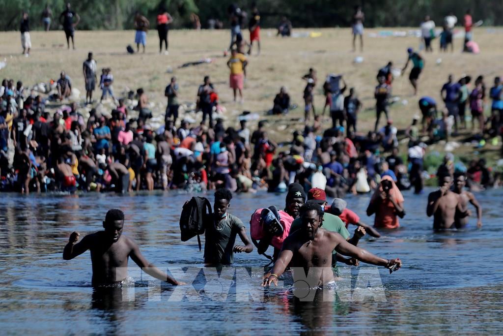 Người di cư vượt sông Rio Bravo ở biên giới Mexico - Mỹ. Ảnh: THX/TTXVN