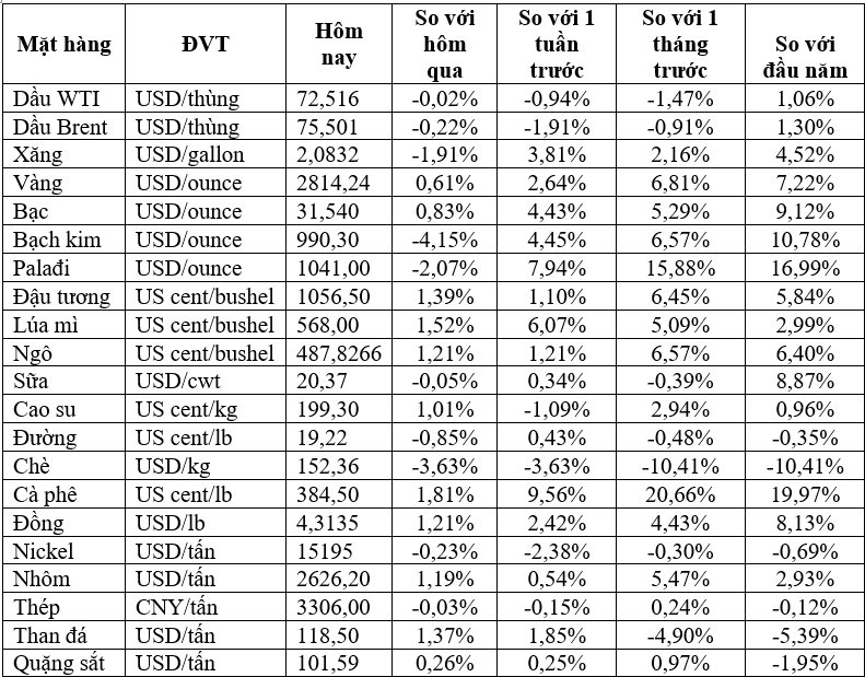 Vàng giao ngay tăng 0,8% lên 2.818,99 USD/ounce, sau khi lên kỷ lục 2.830,49 USD trong phiên này. Vàng Mỹ kỳ hạn tháng 4 đóng cửa tăng 0,8% lên 2.857,1 USD/ounce.