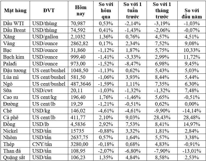 Vàng giao ngay tăng 0,2% lên 2.861,46 USD/ounce, tăng hơn 2% trong tuần này, sau khi lên mức cao kỷ lục 2.886,62 USD/ounce trong phiên này.