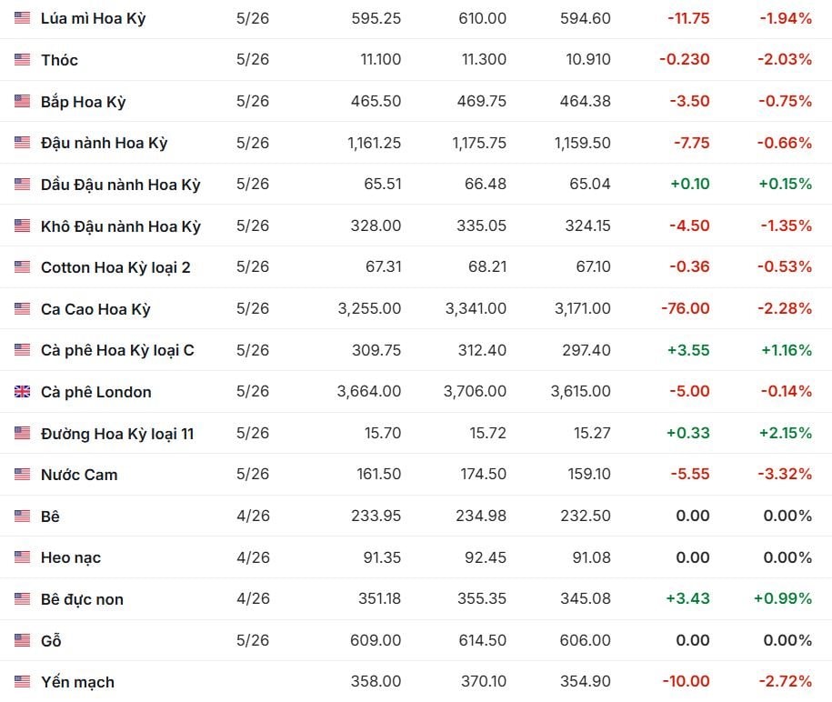 Tại New York, giá Arabica tiếp tục tăng nhẹ, với kỳ hạn tháng 5/2026 tăng 3,85 cent lên 304,75 cent/lb, còn hợp đồng tháng 3/2027 đạt 273,5 cent/lb sau khi tăng 0,5 cent. Trên sàn Brazil, giá cà phê dao động trái chiều giữa các kỳ hạn.