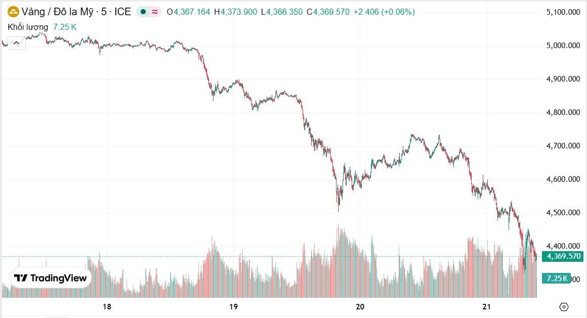 Trái với kỳ vọng thông thường trong khủng hoảng, giá vàng lại suy yếu khi nhà đầu tư ưu tiên nắm giữ USD. Giá vàng giao ngay giảm xuống 4.437 USD/ounce, có thời điểm về 4.428 USD/ounce - mức thấp nhất trong 5 tuần và mất mốc tâm lý 4.500 USD.