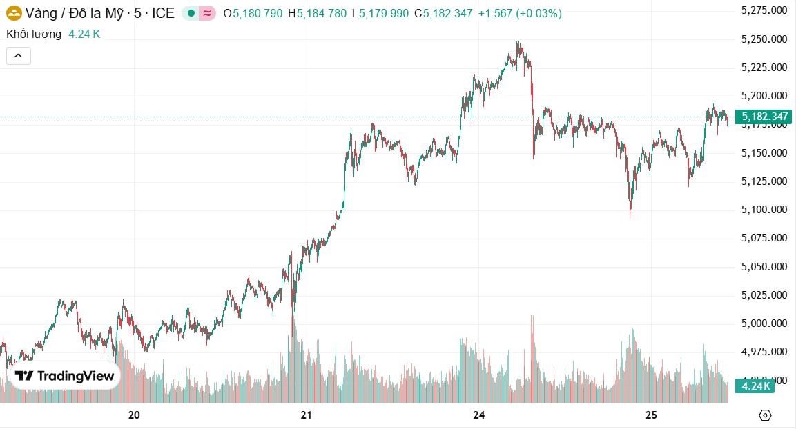 Giá vàng tăng trở lại khi bất ổn về chính sách thuế quan của Mỹ và rủi ro địa chính trị thúc đẩy nhu cầu tài sản an toàn. Vàng giao ngay tăng 0,5% lên 5.174,76 USD/ounce, sau khi giảm hơn 1% ở phiên trước. Giá vàng kỳ hạn tháng 4 của Mỹ đạt 5.192,20 USD/ounce.