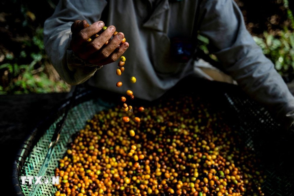 Nông dân thu hoạch cà phê tại Espírito Santo, Brazil. Ảnh: AFP/TTXVN