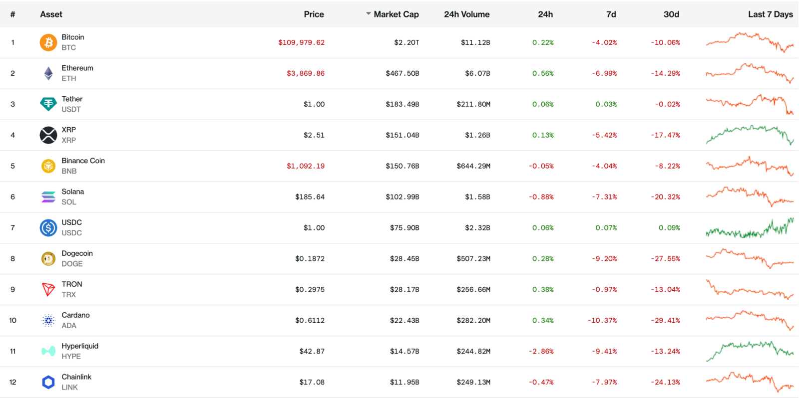 Một số đồng lớn khác cũng tăng nhẹ như: Ethereum (0,56%), XRP (0,13%), Dogecoin (0,28%), TRON (0,38%), Cardano (0,34%). Trong khi ngược chiều, Binance Coin (-0,05%), Solana (-0,88%), Hyperlink (-0,286%), Chainlink (-0,47%) lại giảm.