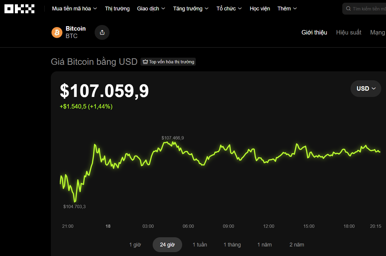 Bitcoin đang giao dịch ở vùng 107.000 USD Nguồn: OKX