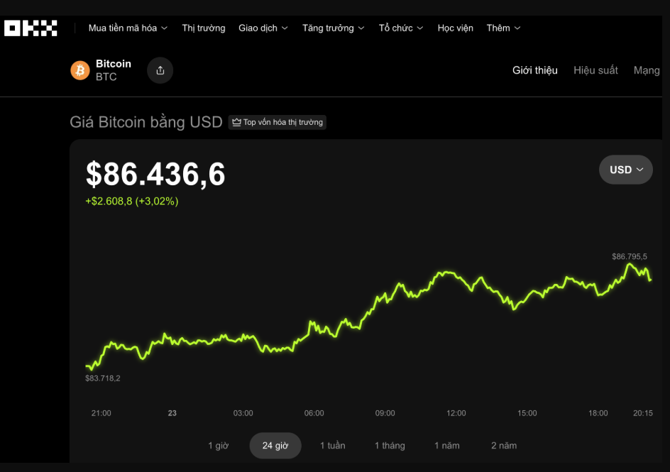 Bitcoin đang giao dịch ở vùng 86.400 USD Nguồn: OKX