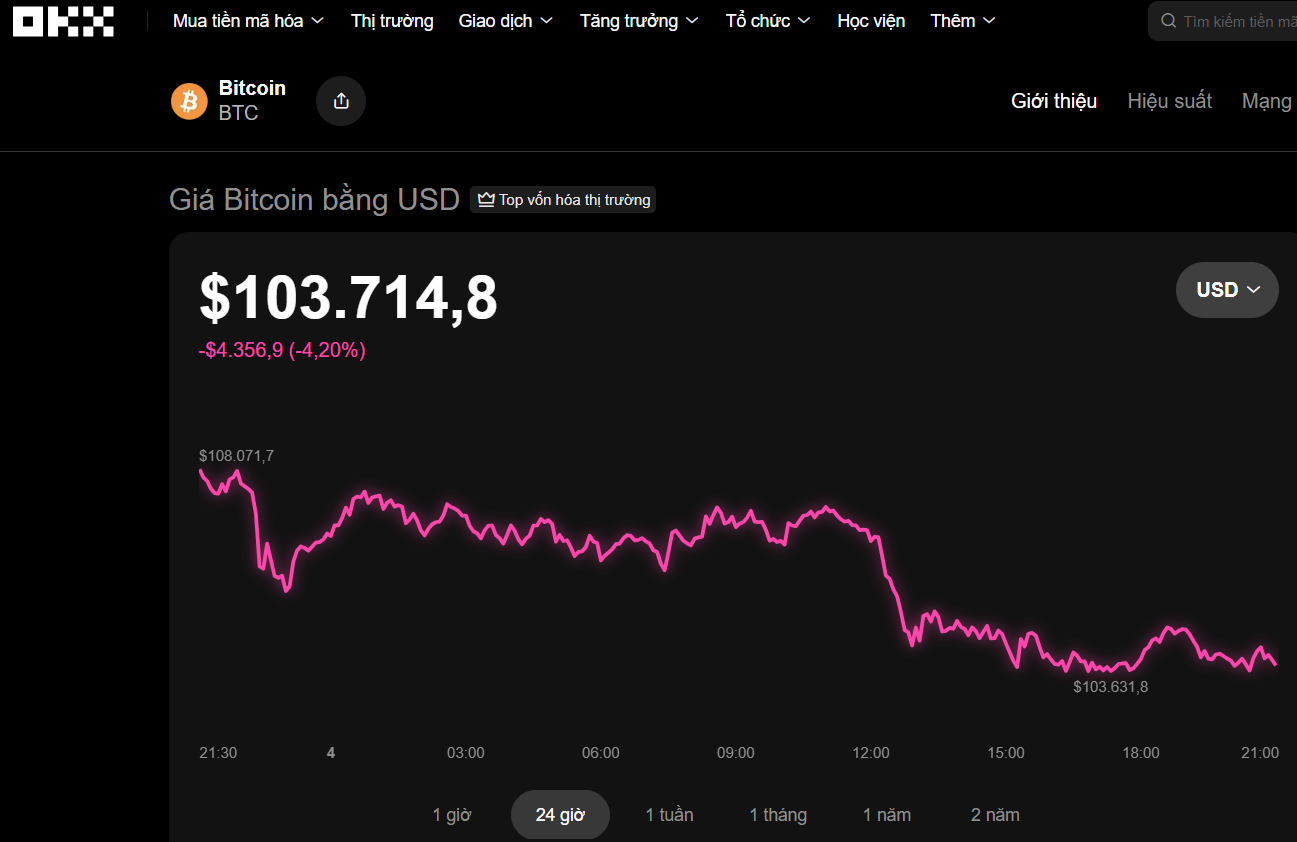 Bitcoin đang giao dịch ở vùng 103.700 USD Nguồn: OKX