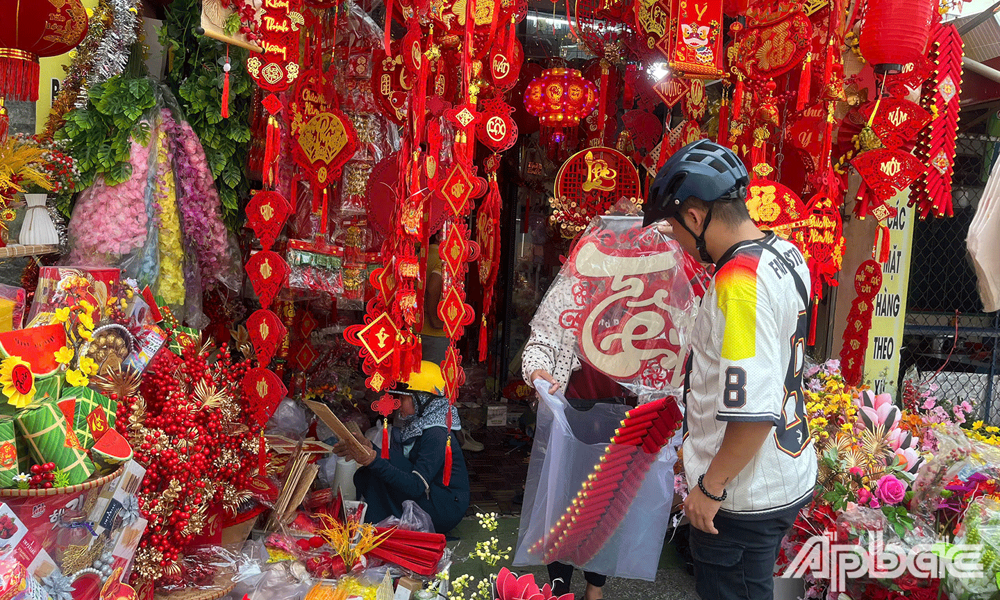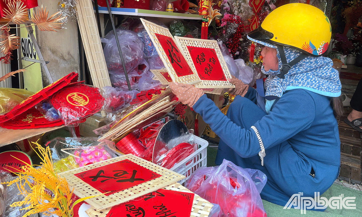 Chị Trịnh Thị Hồng Thúy, chủ shop Hot Trending trên đường Lê Văn Phẩm, TP. Mỹ Tho cho biết: "Mặc dù sức mua hiện tại chưa cao, nhưng tôi kỳ vọng từ ngày 23 tháng Chạp, ngày đưa ông Táo về trời, thị trường sẽ bắt đầu sôi động hơn. Những ngày gần đây, mỗi ngày cửa hàng bán được một ít sản phẩm trang trí tết, chủ yếu là các mặt hàng liễng treo, lồng đèn giấy và hoa giả".